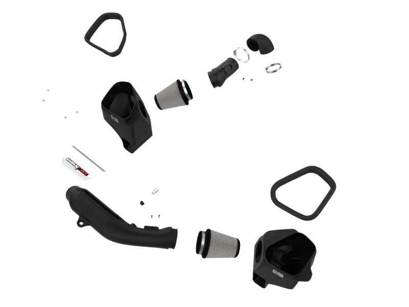 These 6″ tall 360-degree radial flow air filters feature our oil-free Pro DRY S media with three layers of synthetic media for maximum convenience. Their progressive layering provides great filtration efficiency and dust holding capacity, while not requiring the use of oils. This media is best suited for street use. Their inverted top makes for more filter surface area, resulting in longer service intervals. The included high-performance air filters are surrounded by open-element XLPE (cross-linked polyethylene) polymer housings that minimize warm engine air for maximum performance. Their open design allows for easy viewing of the air filters and delivers an aggressive Air Intake sound. They utilize the vehicle’s factory air inlet with no additional hardware. This system features high quality, computer-designed, dyno-tuned intake tubes to achieve maximum power gains while maintaining a perfect fit. Their black XLPE material is heat soak resistant and extremely durable. The longer tube passing in front of the engine features aluminum trim, securing the coolant hose and giving a unique look to your engine bay. An optional carbon fiber trim piece can be purchased separately (PN 54-13032CC). This is a direct fit intake system that utilizes factory mounting points and requires no cutting or modifications. All necessary clamps, couplings, and hardware are included. Its revolutionary design, featuring our patent pending filter-to-housing interface, uses half the number of parts of a traditional cold air intake system.