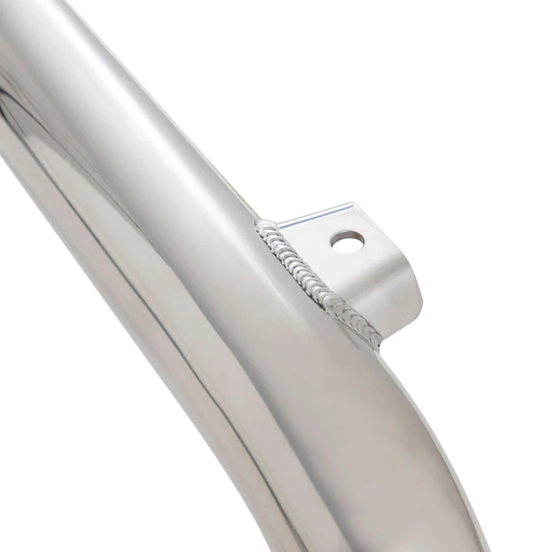 An optional polished or painted center tube offers a different look to the more traditional bumper design. An internal mandrel bender is used to shape the center tube, ensuring even wall thickness throughout.