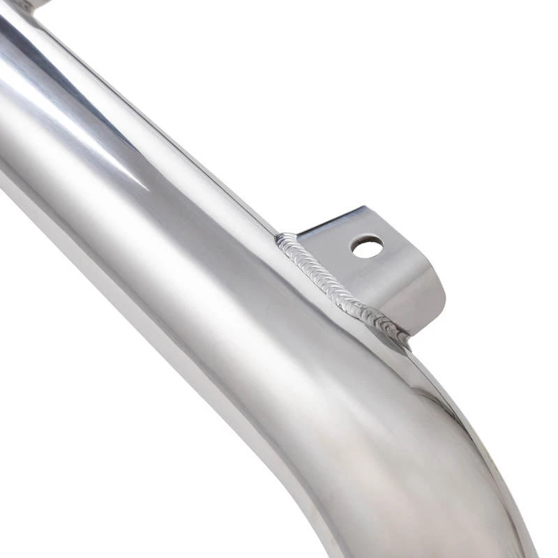 An optional polished or painted center tube offers a different look to the more traditional bumper design. An internal mandrel bender is used to shape the center tube, ensuring even wall thickness throughout.