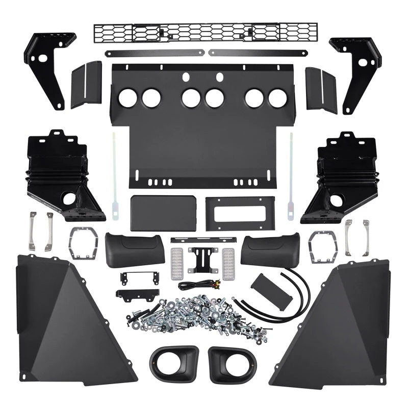 ARB bumpers are engineered and manufactured for durability, functionality and aesthetic. The Summit Bar continues this tradition with fitment for the Toyota 4Runner. The ARB Summit Bar accommodates the 4Runner’s Adaptive Cruise Control system and original equipment (OE) fog lights. These two Toyota Safety Sense features are preserved by relocating the Adaptive Cruise Control sensors within the split pan of the Summit bar, and an ARB-developed fog light surround. Full OE adjustment is retained. The ARB Summit bar features press form cover straps, fog light surround to accommodate OE fog lights, three piece split pan grill with access door for winch clutch operation and a recessed winch control box mount for a sleek, integrated appearance. The dynamic nature of the 4Runner chassis requires clearance for the ARB bar and the fenders and grill of the 4Runner. To achieve this necessary clearance, the wings of the bar have been designed and developed to both follow the OE bumper and to sit beneath the bumper on the outer edges.