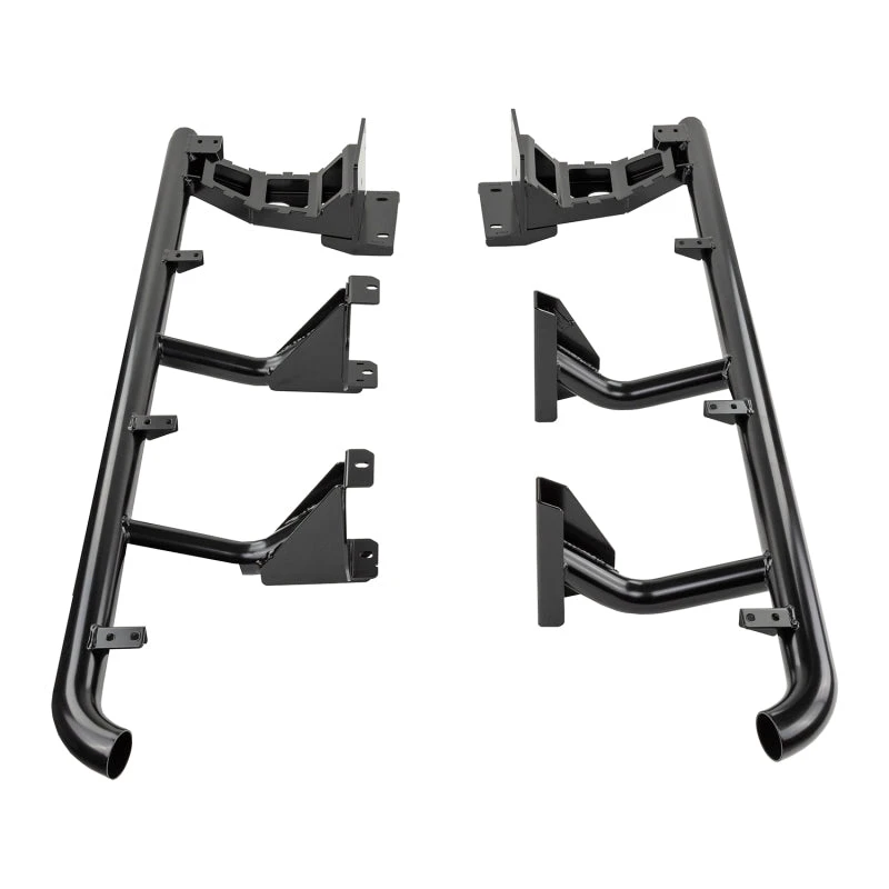 Side rail and combination steps to protect the front quarter panels and lower sills. The integrated step offers improved vehicle access. While they offer an excellent barrier against rock ledges, they are not considered a true rock slider that might be required for aggressive rock crawling.