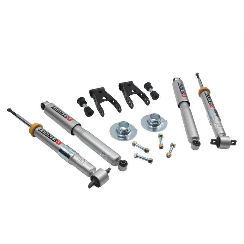 Lower your Sport Truck or SUV right the first time. Belltech Street Performance complete lowering kits include all the parts, pieces and shock absorbers you need to achieve not only the look you WANT, but the ride quality, performance & safety you NEED. Belltech engineers have reviewed the most popular setups for each Sport Truck or SUV in our application range and developed the Belltech Complete Kit Line to simplify your purchase. These complete lowering kits are your all in one box solution. Made up of a variety of combinations of our individual lowering components as well as all the grade 8 installation hardware and alignment pieces necessary to achieve the advertised lowering amount, choosing your kit has never been simpler.