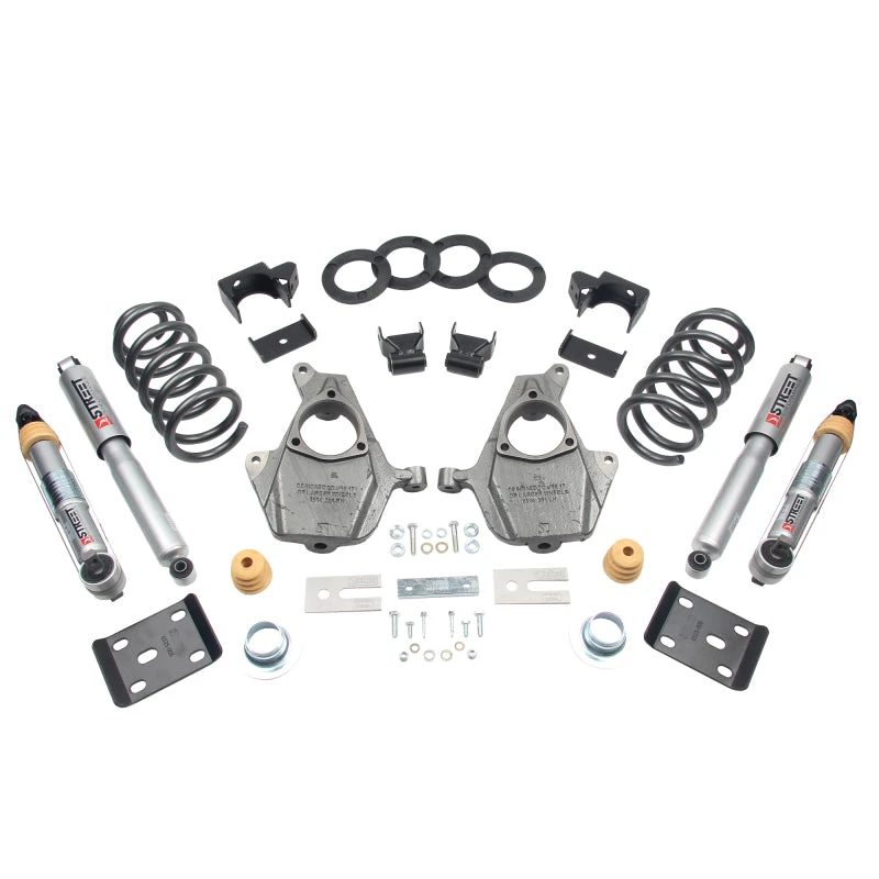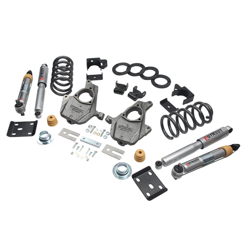 Lower your Sport Truck or SUV right the first time. Belltech Street Performance complete lowering kits include all the parts, pieces and shock absorbers you need to achieve not only the look you WANT, but the ride quality, performance & safety you NEED. Belltech engineers have reviewed the most popular setups for each Sport Truck or SUV in our application range and developed the Belltech Complete Kit Line to simplify your purchase. These complete lowering kits are your all in one box solution. Made up of a variety of combinations of our individual lowering components as well as all the grade 8 installation hardware and alignment pieces necessary to achieve the advertised lowering amount, choosing your kit has never been simpler.