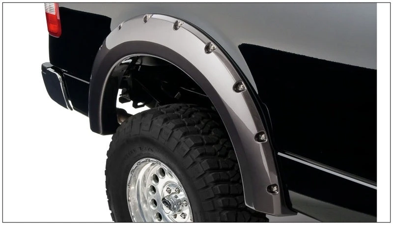 With their recessed stainless steel bolts and massive presence, Pocket Style Fender Flares are a Bushwacker original and an off-road icon. They give you the hard-core look of bolt-on flares, with no body-side sheet metal drilling required. Pocket Style Fender Flares are custom-designed for your vehicle to complement oversized tires and high-clearance lift kits. You can mount them right out of the box with their tough, OEM-style matte black finish they’re UV protected so they won’t chalk. You can also paint them to match or accent the body color for a factory-custom look. Pocket Style Fender Flares are made from our thick, warp-resistant Dura-Flex 2000 material and tailor-made for added durability and flexibility on the trail. When you need maximum tire coverage with minimum time and effort, it’s in the pocket. Pocket Style Fender Flares from Bushwacker.