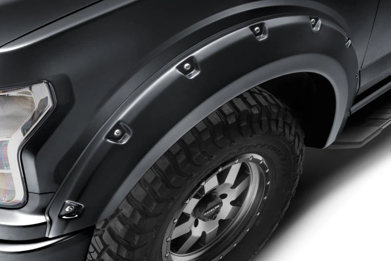 Bushwacker’s rugged, iconic Pocket Style Fender Flares allow for more tire coverage and more clearance for trucks and SUVs while protecting the vehicle from dirt and debris. These flares are now available pre-finished to match the paint on your new Ford F-150, plus they have the edge trim and stainless steel hardware pre-installed for quick and easy installation and a perfect fit . Made in the USA from sturdy Dura-Flex?2000 material, these flares are warp-resistant and tailor made for each application. Despite their bolted-on appearance, these flares install easily with minimal drilling for a secure fit. And since they’re ready to install out of the box, there’s no waiting on paint, and no hassle with installation.