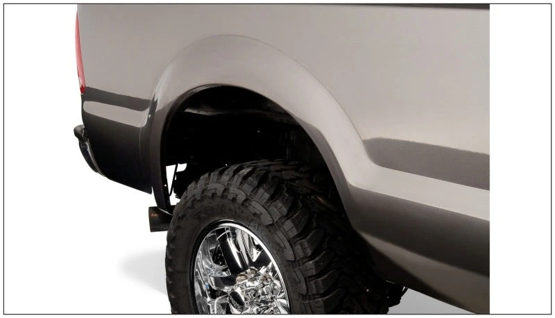 You’ve equipped your vehicle with oversize wheels and tires for serious off-road traction and clearance. Now you need extra tire coverage to protect your rig’s body and maybe even comply with local laws. Bushwacker Extend-A-Fender Flares deliver premium-grade protection and style matched to oversized tires, yet as tough as they are, they go on easily with no drilling required. You can install them in minutes and enjoy them for years. Our exclusive Dura-Flex 2000 material is designed for added durability and flexibility with built-in UV protection. Your Extend-A-Fender Flares resist chalking, cracking, and warping, whether you leave them with their OEM-style matte black finish or paint them for a totally personalized look. Either way, your truck will look factory-equipped for your off-road tires. Extend-A-Fender Flares go on easy, perform tough, and look great.