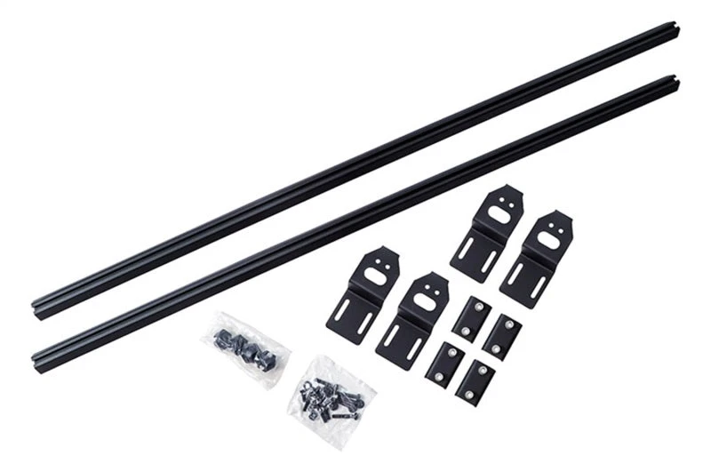Dee Zee Hex Series Universal Cross Rails – Adds unlimited functionality to mount accessories above your truck bed. Made of extruded hexagonal aluminum, the Cross Rails mount using a universal bracket the securely attaches to your truck bed rail. The cross rails can be psitioned anywhere along the length of your truck bed by hand loosening knobs. Channels allow you to customize the mounting of accessories anywhere along the channel such as lights, tie downs, mountain bikes or tents (not included). The protective texture black powder coat prevents oxidation and features our NRT(TM) powder coat chemical. NRT(TM) (No Rust Technology) is a specially developed coating that increases corrosion protection. Rated for 200 lbs.