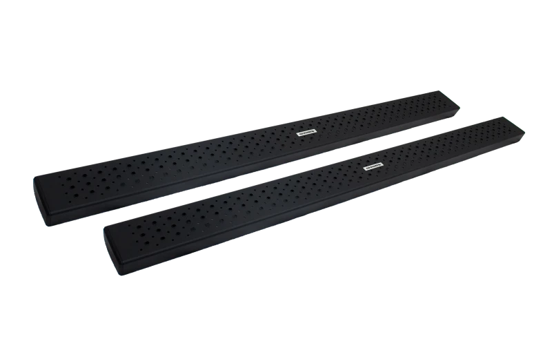 6 HD OE Xtreme side steps Heavy duty welded steel construction Extreme traction no slip steel step surface design for increased safety Perfect for extreme environments and work trucks 87 length fits crew cab trucks Bolt-on, no-drill installation for most applications Black textured powder coat finish with a 3 year warranty