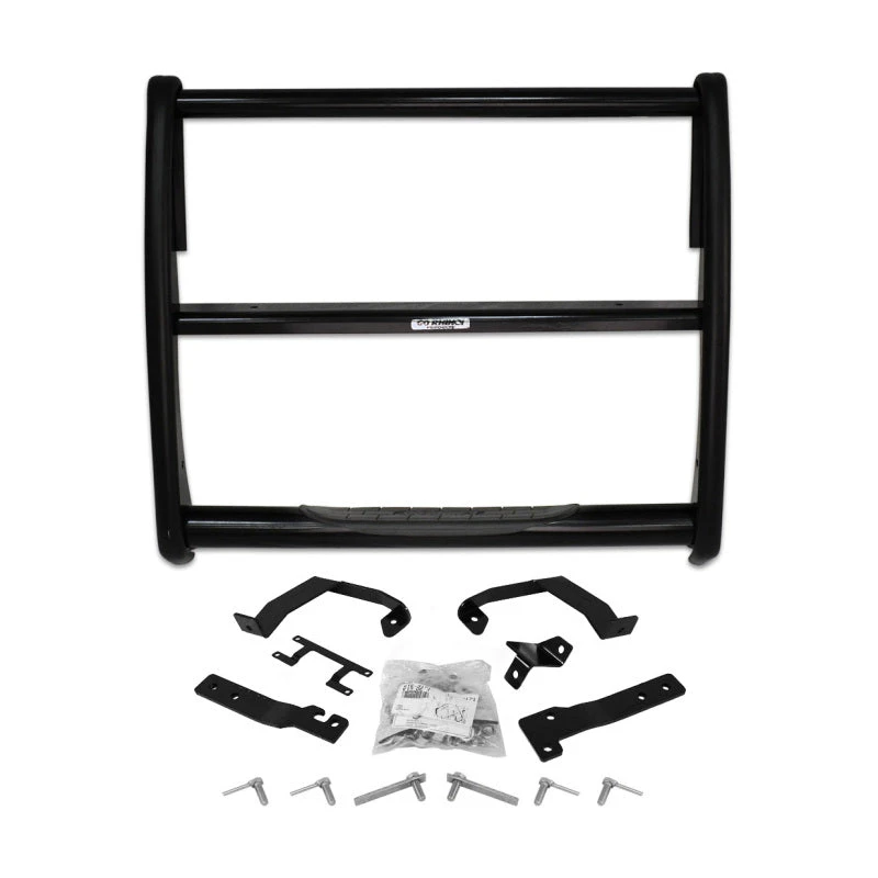 Go Rhino 3000 Series StepGuards are the only Euro-style grille and brush guards with a patented, built-in step or plate. This step or plate, which has an oversized pad, allows for easy access to the hood and engine on today’s lifted trucks and SUVs. Most vehicle models will not require drilling or cutting during installation. The 3000 Series StepGuards are available as Center Grille section-only or with protective Brush Guards. 3000 Series StepGuards come with a Limited Lifetime warranty on materials and construction and a 5 year warranty on the Finish.