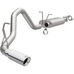 The MagnaFlow 2025 RAM 1500 V6-3.6L SPEQ Series Cat-Back Performance Exhaust System 19680 brings out the personality of your Truck with our signature resonant, powerful exhaust tone and dyno-proven performance. #19683 3†diameter mandrel bent main piping passes through a specifically tuned performance oval muffler before exiting in a single passenger side rear exit with a 4†polished tip. This full-size truck exhaust kit is the perfect equalizer between sound and performance. Upgrade your truck to the next level with an exhaust that has the pipes to put other trucks to shame. With this system your truck will be producing moderate exterior and mild interior sound levels while leaving other trucks feeling envious at every stoplight. Exhaust kit 19683 features a cat-back exhaust layout that replaces your trucks stock exhaust components from near the catalytic converter on back. Extensive 3D scanning during development has resulted in a direct-fit design that you can easily install yourself. 19683 is produced using CNC precision robotic manufacturing techniques and is backed by MagnaFlow’s 1-year limited finish warranty and limited lifetime construction warranty.ÂÂ