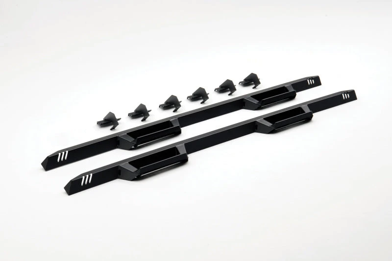 The EpYx drop down step provides a sleek and polished aesthetic to your vehicle. The expanded step plate offers the ultimate ease of access to any vehicle. Angular steel construction offers long lasting durability and strength for all of your vehicle needs. All new modular brackets make installation quick and easy.
