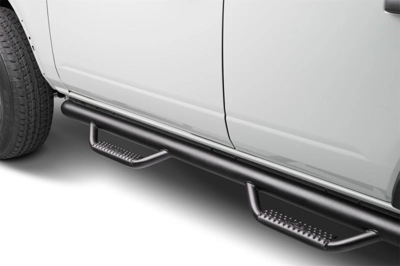 Built with today’s work truck in mind, N-FAB offers its patented hoop step design and innovative mounting system in a Cab Length configuration. Designed with classic N-FAB styling, Cab Length Nerf Steps are ideal for flat bed trucks, stake bed trucks, vehicles with campers, and even trucks with side exhaust forward of the rear wheels. Manufactured from .084 wall tubular steel, Cab Length Nerf Steps provide all of the strength and durability for which N-FAB is known. All Nerf Steps have a 5 year Finish and Lifetime Workmanship Warranty.