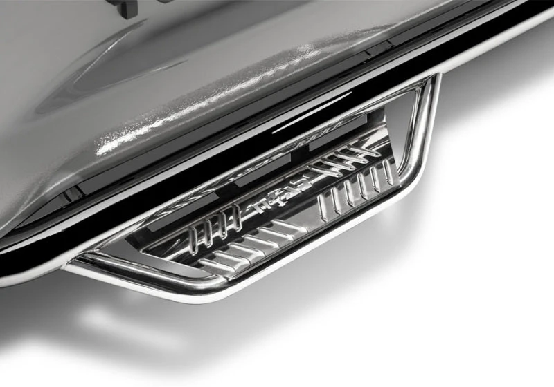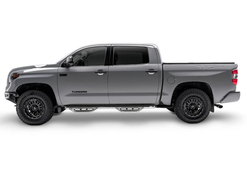 Patented N-FAB hoop step design featuring an all-new expanded and enclosed sure-grip step plate. With a 3 in. main tube diameter, this application fits high and tight to the vehicle body for a clean modern style. Fully welded 1-piece construction for strength, long lasting durability and ease of installation! Created from Stainless Steel construction. Drop down step design and location is engineered to allow for ease of access on stock or lifted vehicles. Lifetime finish warranty on polished stainless steel, 5 year finish warranty on textured black finish and lifetime craftsmanship warranty. For the ultimate vehicle access experience in any condition!