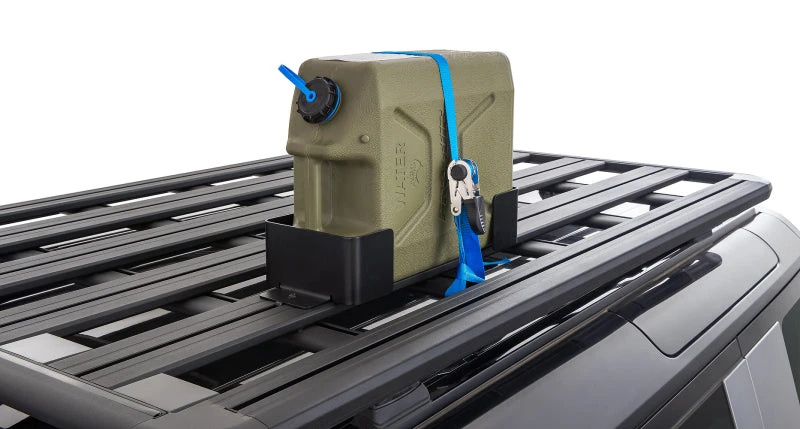 Take enough fuel or water to get you to the most remote destination with the Rhino-Rack Single Jerry Can Holder. This product is a space conscious resolution to your jerry can needs.