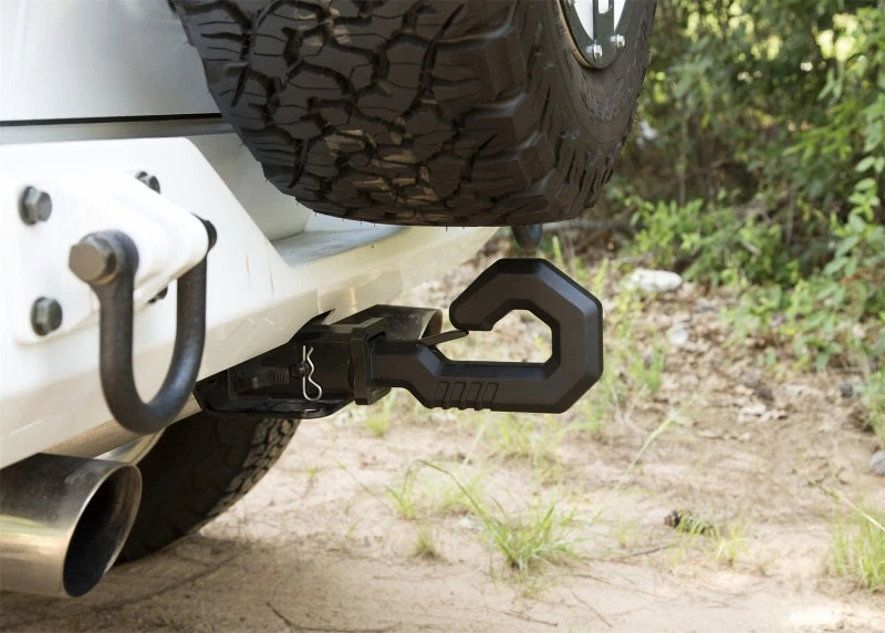 The Rugged Ridge Elite Giga Hook is not just another recovery hook. It?s massive, oversized ?scorpion-tail? styling makes it as attention grabbing as it is functional. Each Elite Giga Hook is tooled from high-strength AISI 4340 carbon steel, packing enough brute strength to manage even the toughest off-road recoveries. A spring-loaded latch closure insures that tow straps stay in place on the Elite Giga Hook, even when the load is released. Available in wide variety of attractive powder coat finishes: Black, Red, Pink, Yellow, Green or a raw paintable finish for those who dare to explore the possibilities. The Elite Giga Hook works with any 2-inch receiver hitch and is guaranteed to take your recovery gear to the next level.