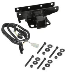 Custom design bolts directly to factory mounting points on the rear of the vehicle, very similar design to the OE Receiver Hitch. Durable powder coat design sheds water and provides a long lasting rust free finish. Includes cutout for factory wiring harness mounting. Designed as a one-piece welded assembly for added strength, we built our hitch receiver to match the towing capacity of your Jeep: 3,500-lb tow rating, 350-lb tongue weight rating with weight distributing equipment; otherwise 2000-lb tow rating, 200-lb tongue weight rating, 2 in. opening.