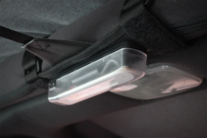 The natural design of a Jeep interior does not provide adequate interior lighting for map reading or looking for items inside your Jeep. Now you have two outstanding options for interior lighting with the new Rugged Ridge LED Courtesy Lights. Each lighting option features an extra bright, energy efficient LED light powered by 3 AAA batteries (not included) so there is no wiring required. The Roll Bar mount design attaches to any 2-3 in. roll bar using heavy duty straps and hook and loop fasteners. The NEW header mount courtesy light attaches with screws to the interior location of your choice.